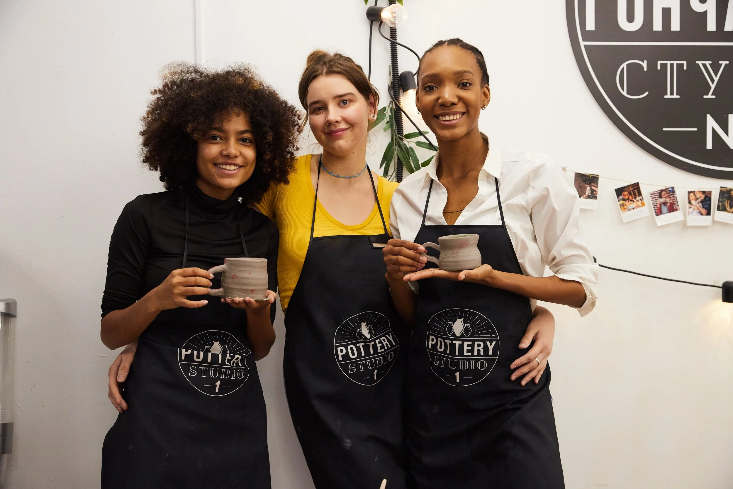 4. All materials provided: aprons, clay, paints, pottery wheels, and tools